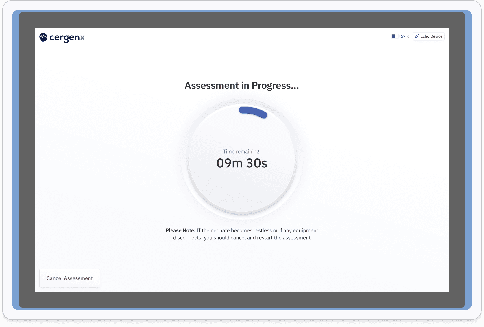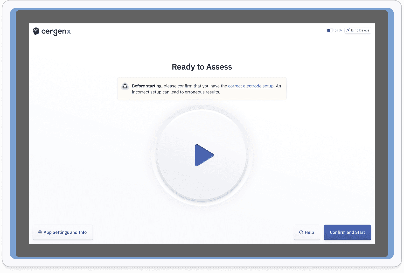 Designed for simplicity and requiring minimal training, the CergenX Wave empowers any healthcare professional to perform advanced neurological assessments quickly, any time they need it. Clear and simple results aid in a quick transition from assessment to making informed decisions regarding patient care.