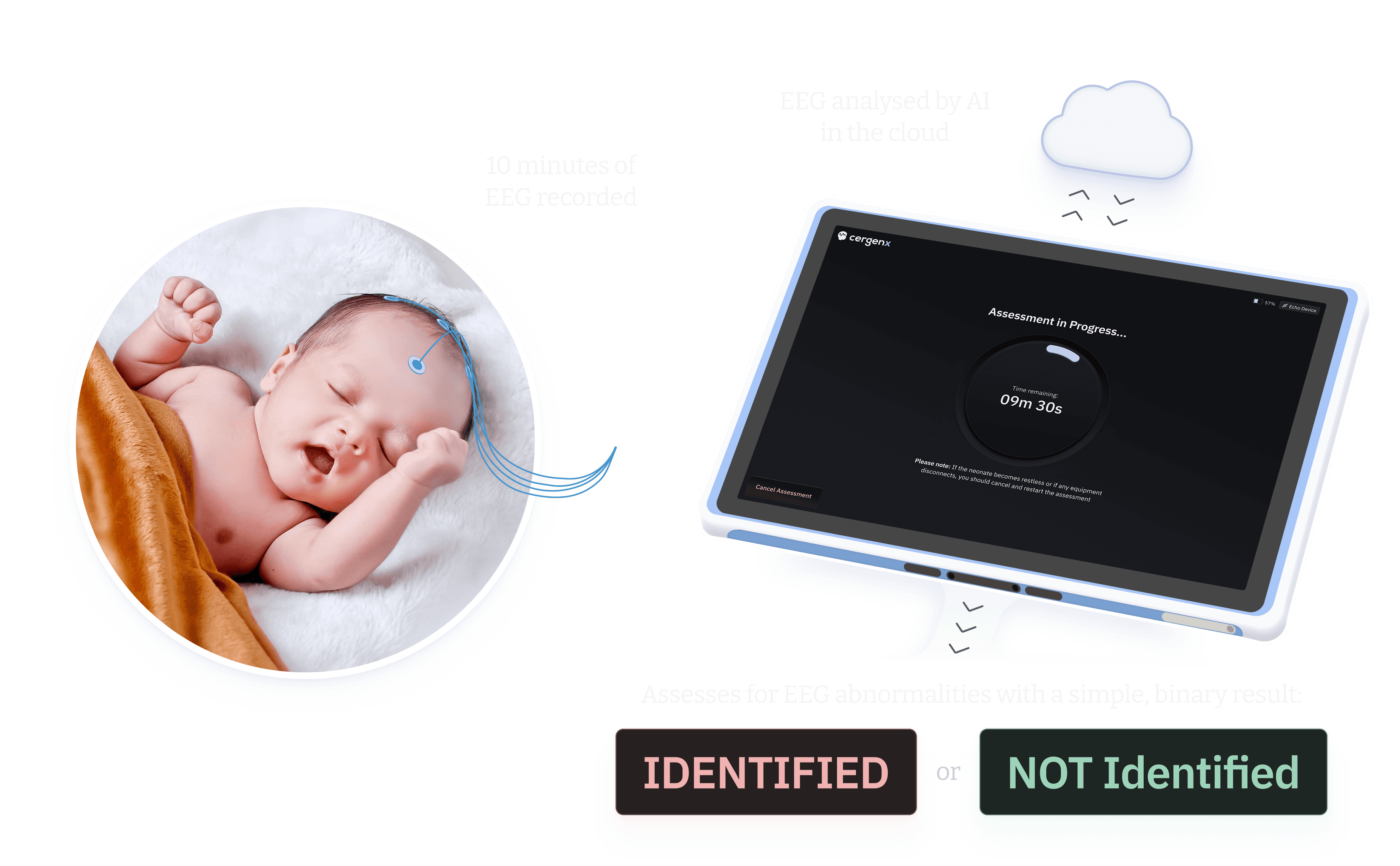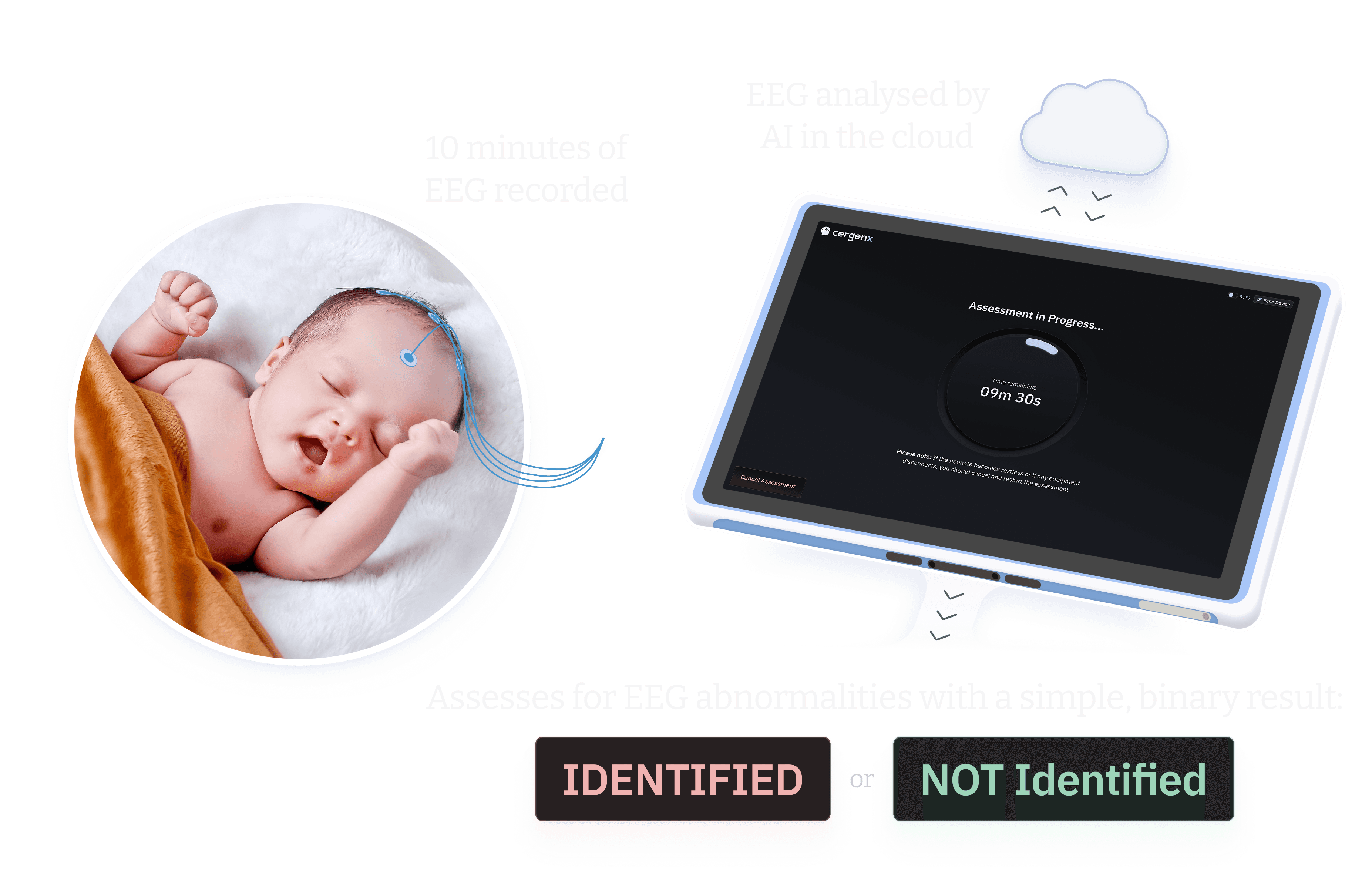 Our AI-powered innovation in neonatal neuroprotective care revolutionises the assessment of newborn brain function, offering fast insights informed by expertise, right at the point of care, in just minutes.