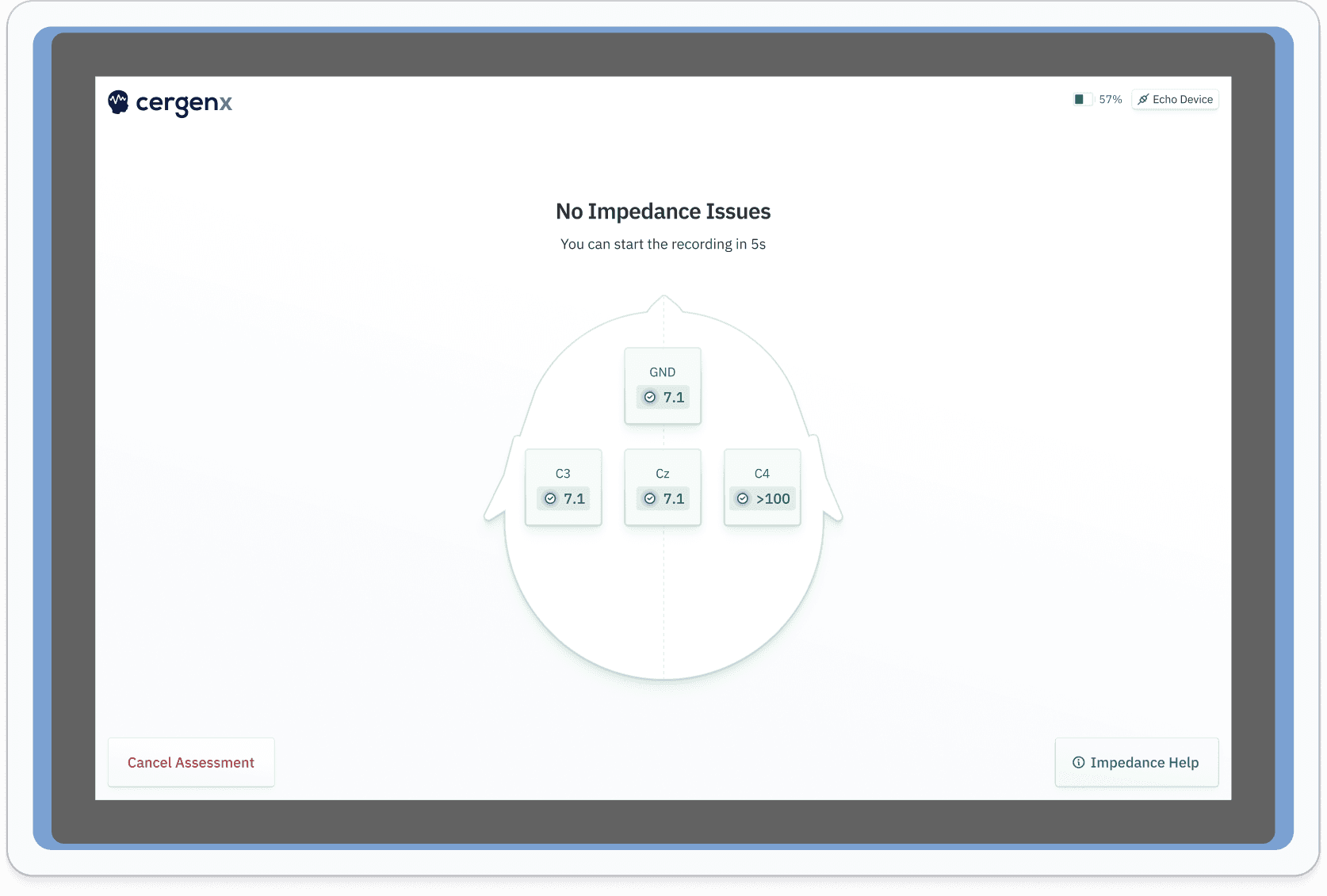Wave runs an initial quality check of the electrode connections.