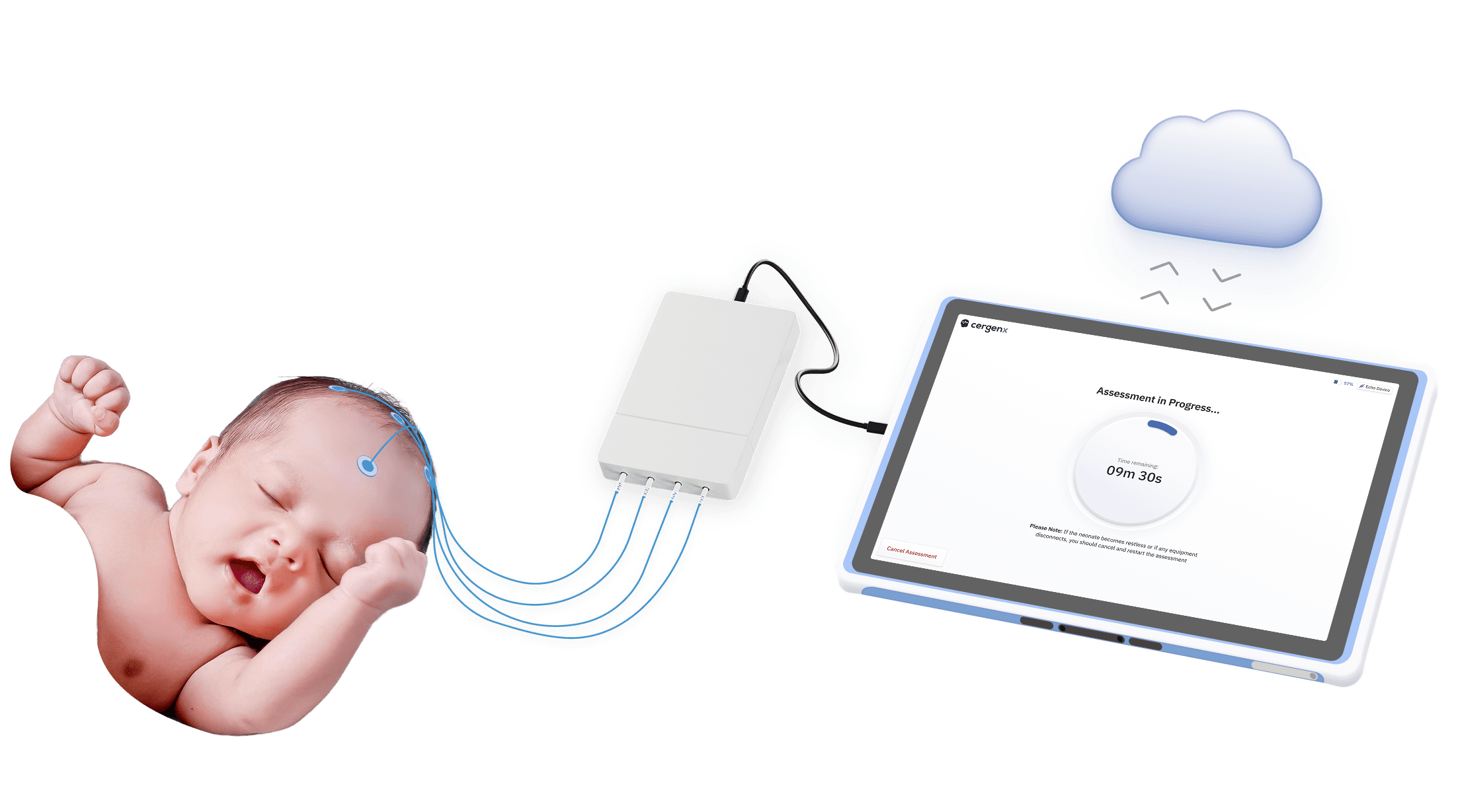 Secure immediate EEG interpretations using the CergenX Wave. Harnessing the power of 2-channel EEG, our user-friendly device enables critical decisions based on data without delay. This accelerates the evaluation process and ensures that each assessment accurately reflects a newborn’s neurological state—vital in the dynamic environment of neonatal care.
